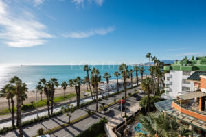 The property faces south and has a total constructed area of 230m2, distributed into an entrance hall and a large, bright living-dining room with large windows that provide abundant natural light and open up to spectacular views of the sea and the beach. It features an independent kitchen, fully furnished and equipped with appliances, five bedrooms with sea views and built-in wardrobes, and three full bathrooms.
