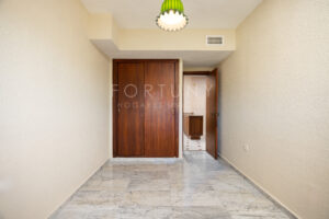 The apartment features excellent qualities, including marble floors, double-glazed windows, new interior doors and wardrobes, and centralized ducted air conditioning.