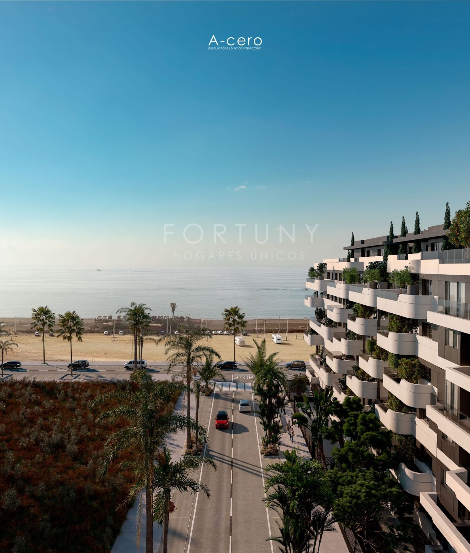 Fortuny Hogares Únicos presenta esta magnifica vivienda en primera línea de playa y con vistas al mar en un edificio de seis alturas y 52 viviendas de dos y tres dormitorios, ubicado en una de las mejores zonas residenciales de Torre del Mar, Sup T12.
